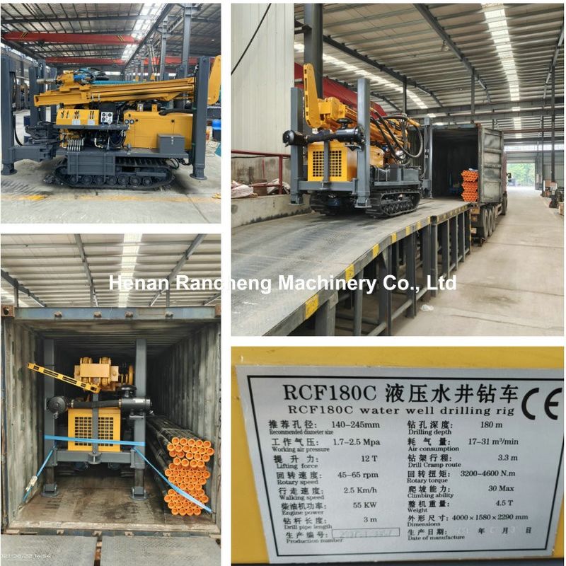 La plateforme de forage hydraulique RCF180C est un équipement de forage de haute performance développé indépendamment.Il est doté d'une tête de forage rotative à double moteur et peut être combiné de manière flexible avec des pompes à boue et des compresseurs d'airÉquipé d'un moteur diesel de 55 kW puissant et stable, et d'une structure de marche en caoutchouc, il offre une mobilité pratique et une adaptabilité aux différents chantiers.Il possède une profondeur de forage allant jusqu'à 180 mètres et une plage de diamètre de forage de 90 à 300 millimètresIl est largement applicable à divers projets de forage, y compris les puits d'irrigation, les puits d'eau potable domestiques,puits géothermiques, et puits industriels.